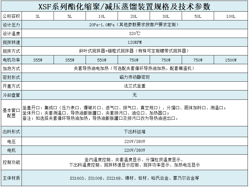 實驗室聚合釜,由反應容器、攪拌器及傳動系統、降溫裝置、防爆裝置、加熱爐等組成.酯化縮聚反應釜是一種將酯化與縮聚同時完成的反應裝置,在酯化縮聚反應釜做酯化反應時通過精餾柱、填料塔、冷凝器將酯化反應生產的水分及低分子物分離出去;在酯化縮聚反應釜做縮聚反應時將酯化反應閥門關閉將縮聚閥門打開,將溫度調到較高溫度條件下通過攪拌系統將許多相同或不相同低分子物質相互作用,生成高分子物質,同時將析出小分子通過冷凝器接收罐將其分離收集起來。酯化縮聚反應釜廣泛應用在有機合成、化工化纖等領域。